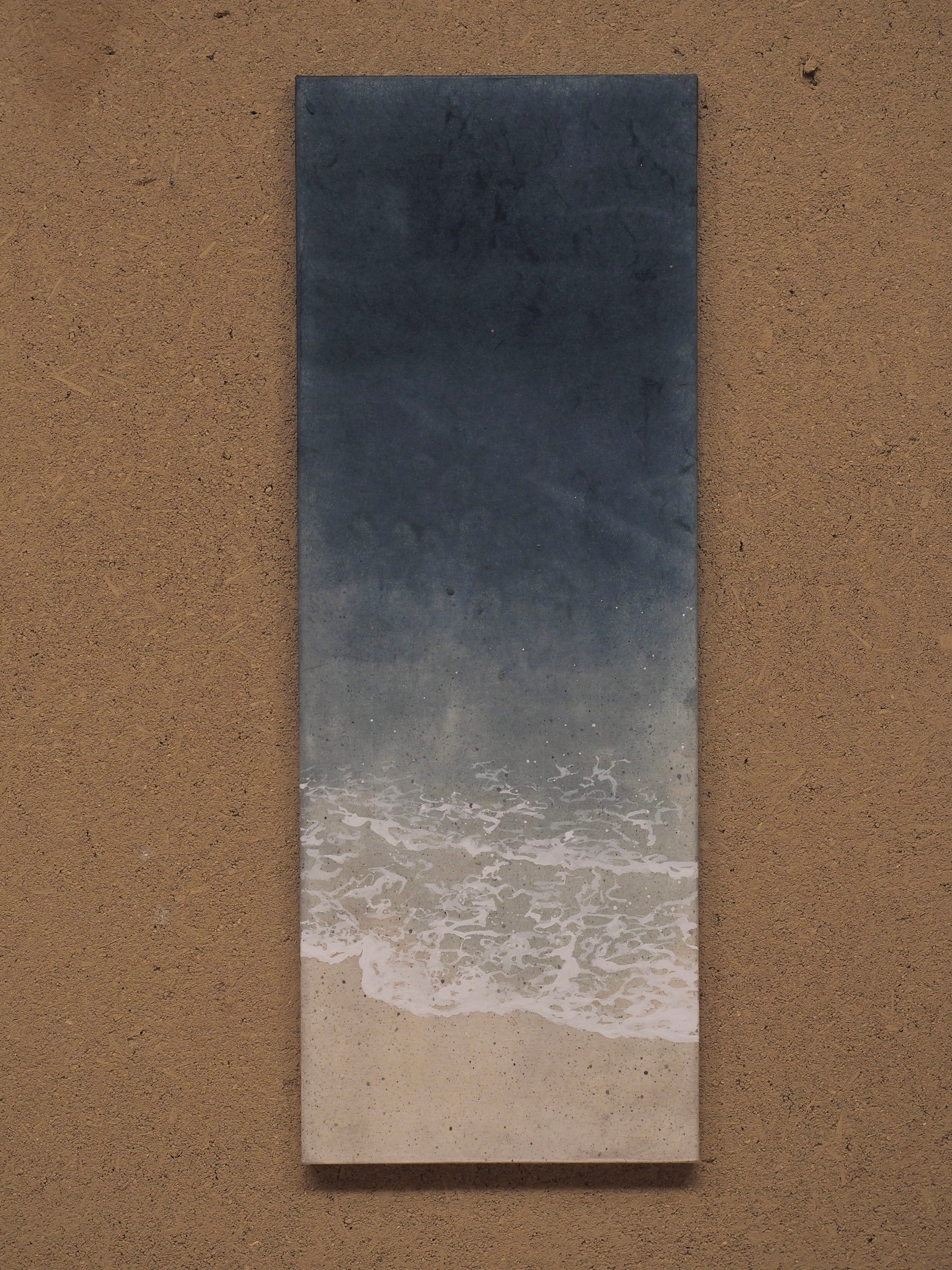material:徳地和紙に藍 胡粉 海水 膠 顔彩