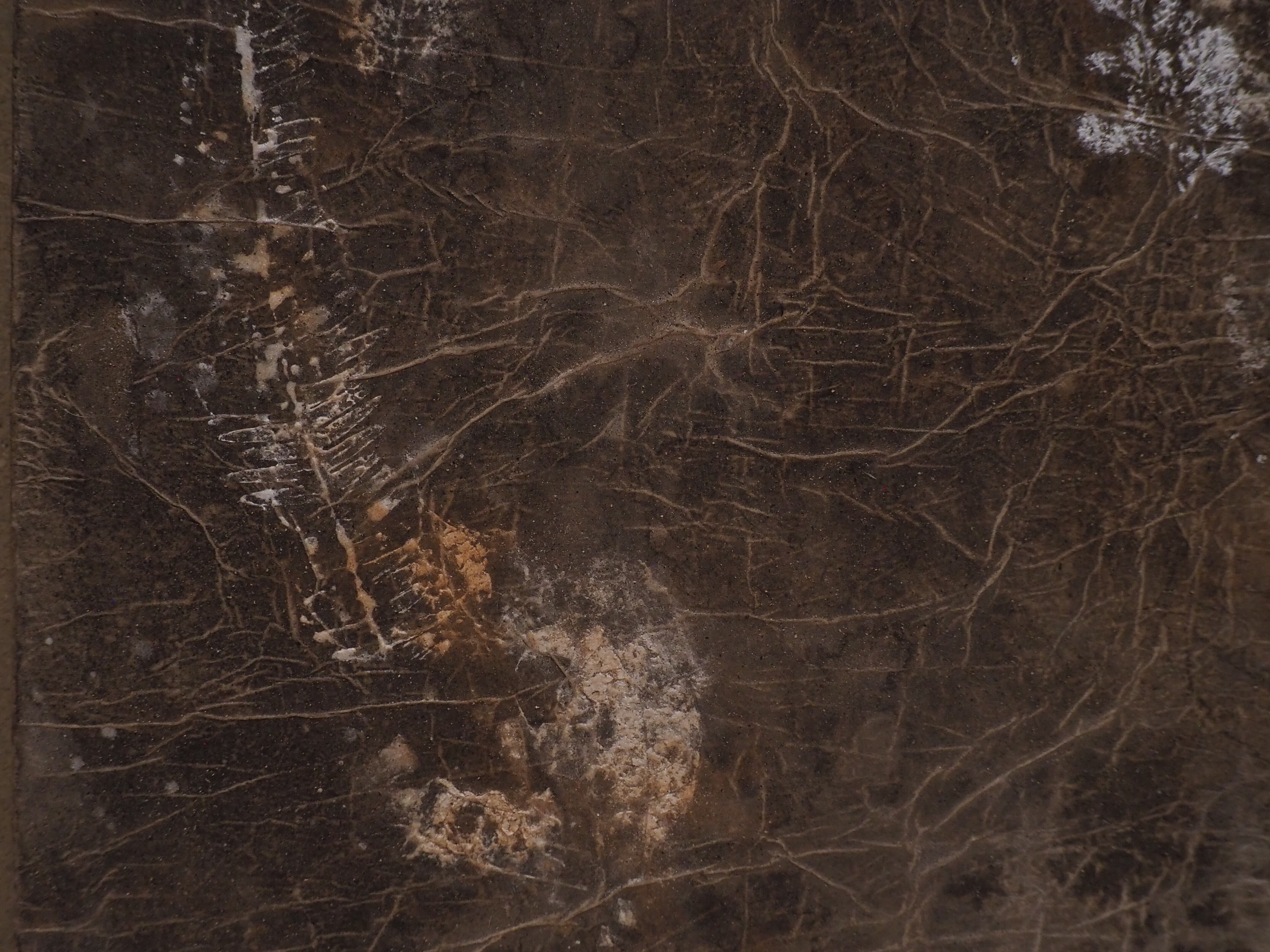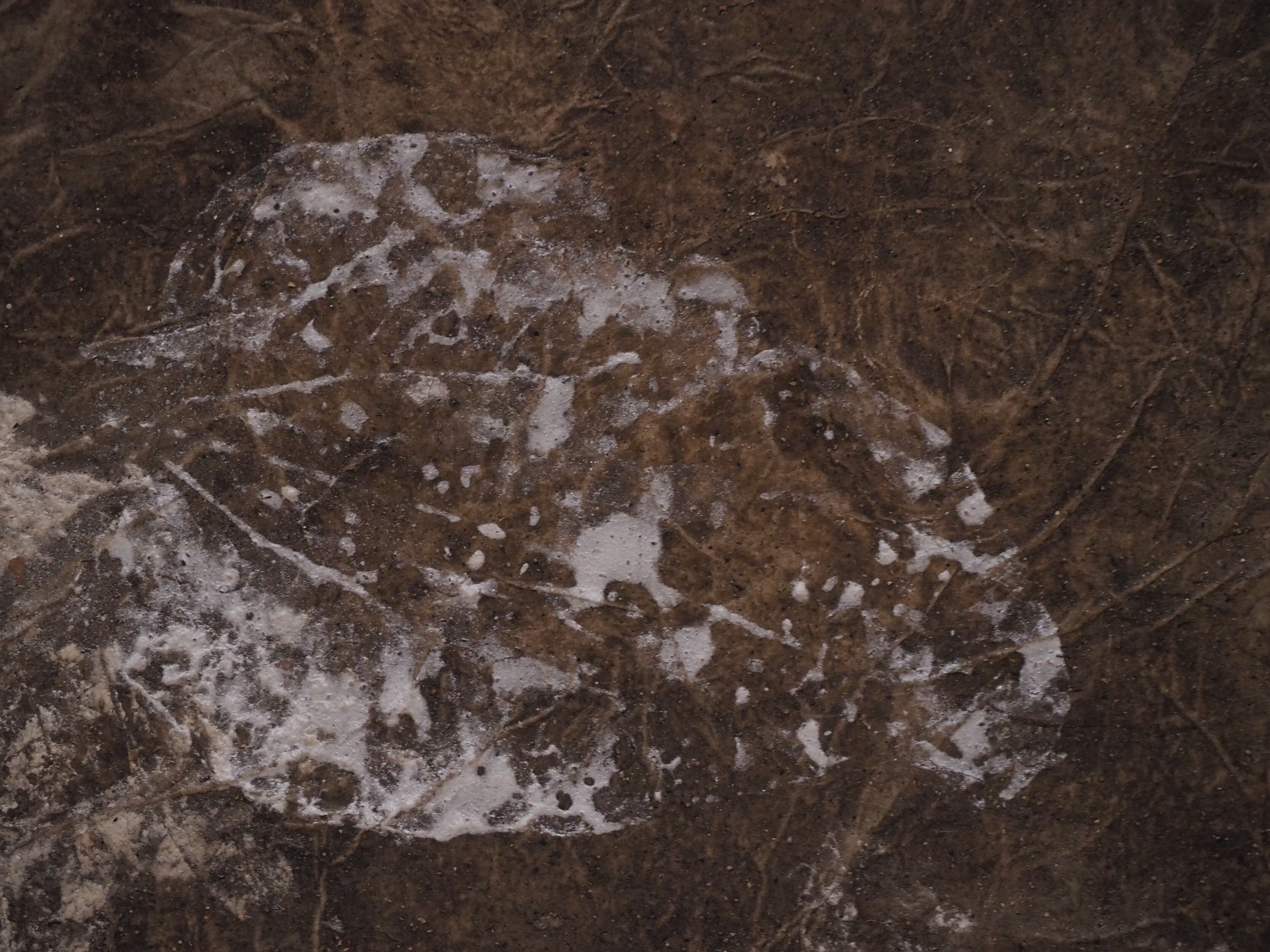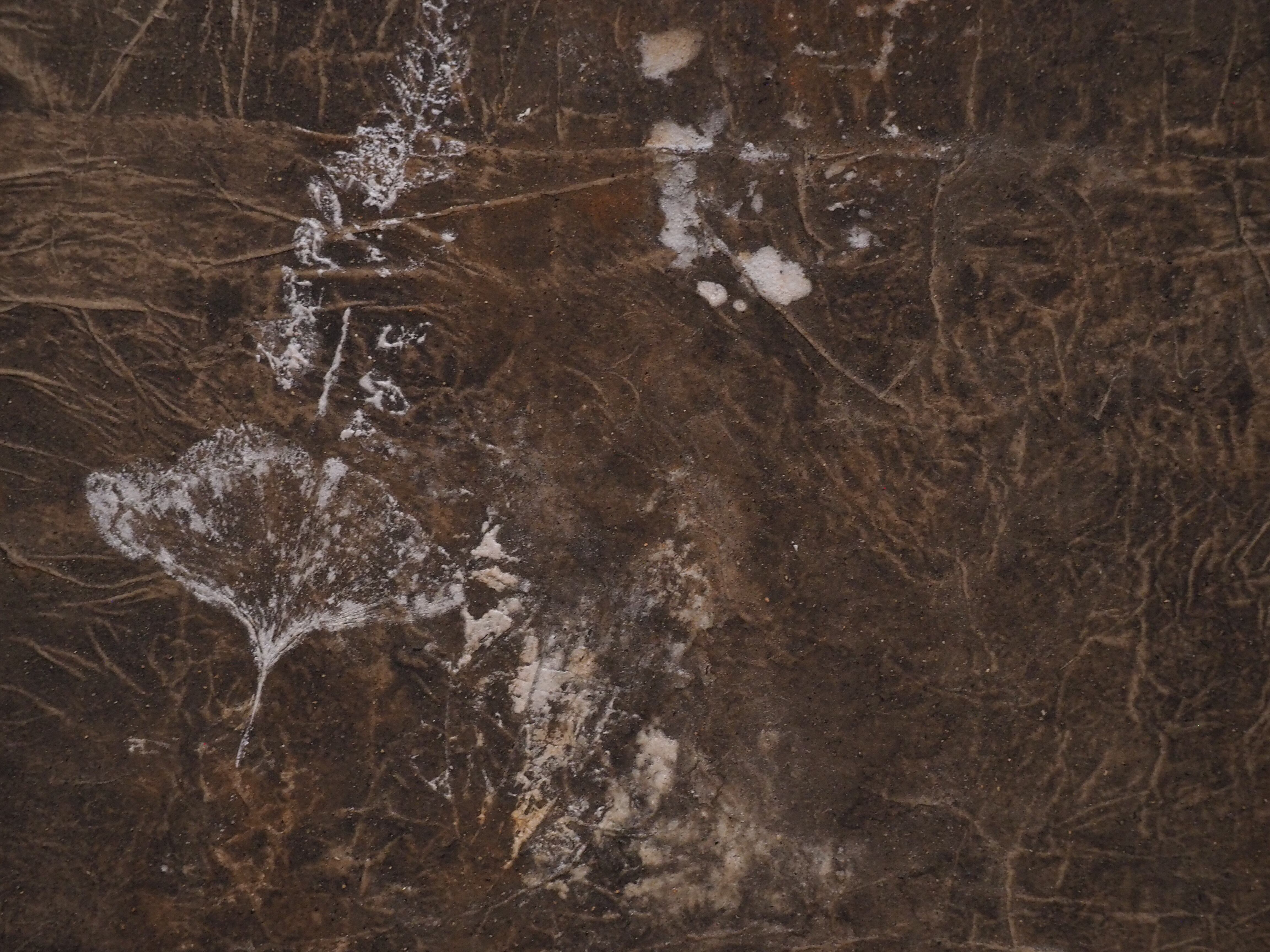 そこへ雲母を纏わせた落ち葉を、版のように一枚一枚押していく。その上にまた泥水をかけては乾かし、また落ち葉の版を押していく。