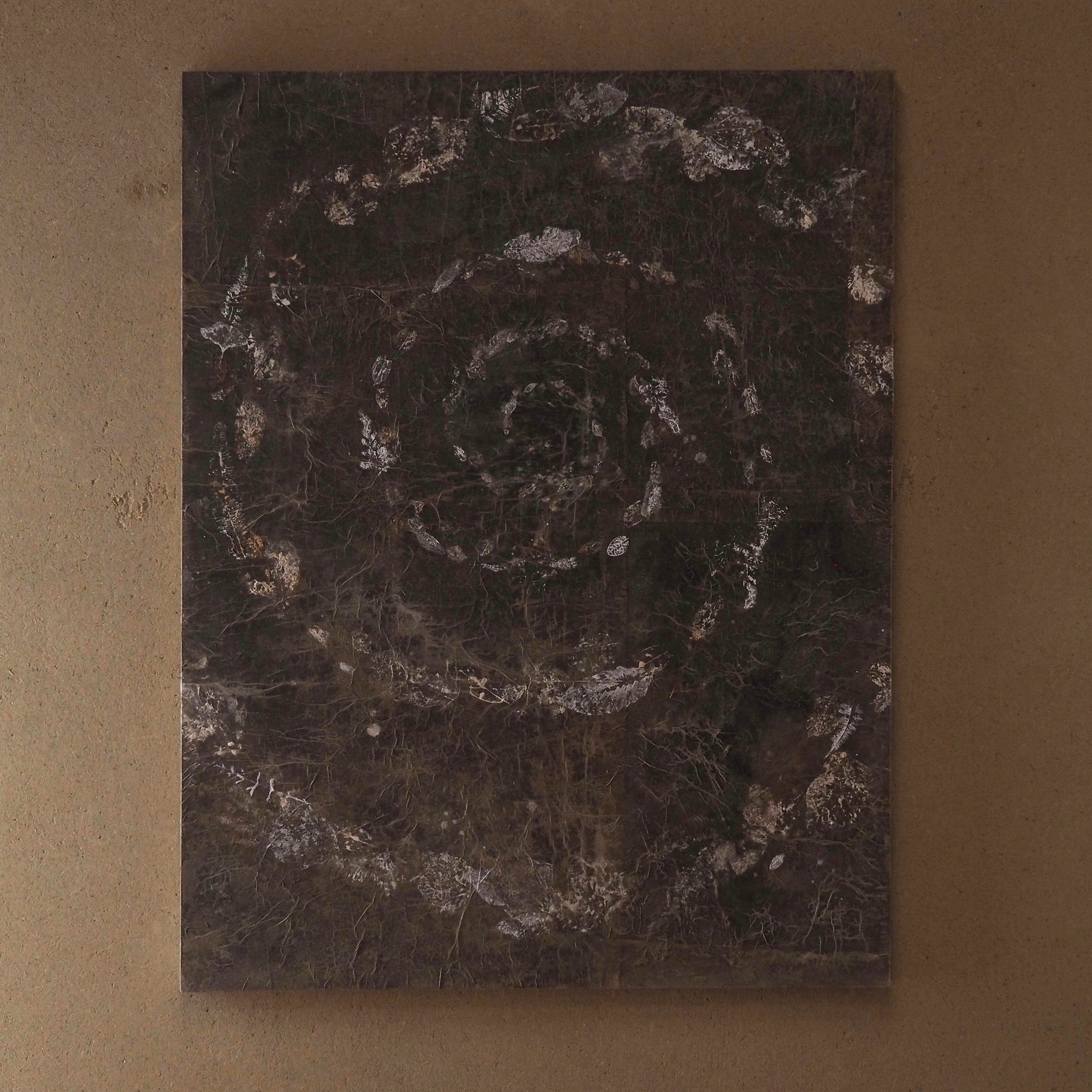 地上の生命が生き死に、その亡骸が微生物によって熟成し、発酵し、分解し、土へと還り、また新たな生命への廻りにつながる。その大地の成り立ちを、画面に層を成しながら落とし込んでゆく。